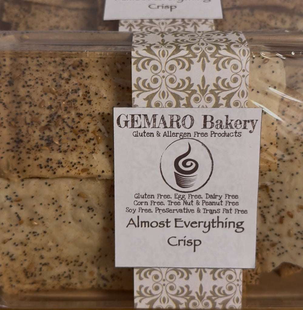 Filtered Water, Brown Rice flour, Tapioca Flour, Organic Agave, Sunflower Seed Oil, Sunflower Seed, Pumpkin Seed, Golden & Brown Flax Seeds, Poppy Seeds, Gluten Free Baking Powder, Guar Gum, Xanthan Gum, Garlic powder, Rosemary & Parlsey, Salt & Pepper, Dry Active Yeast