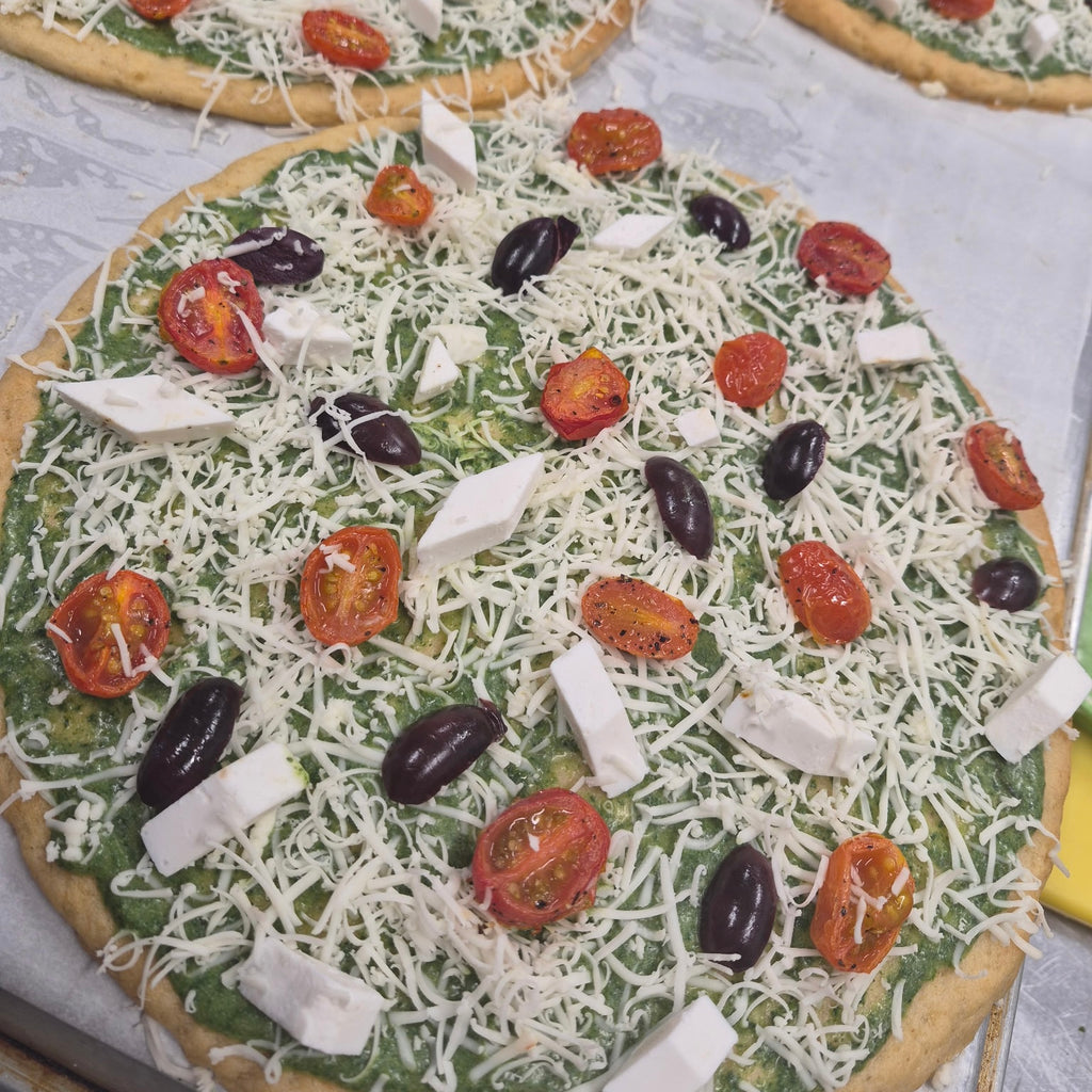 House Made Pesto Sauce: Baby Spinach, Basil, Sunflower Seeds, Olive Oil, Salt & Pepper.